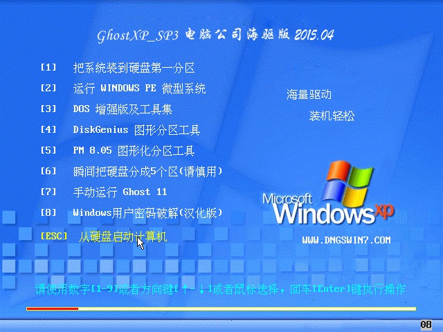 安装请设置光盘启动,然后选择“进入 WinPE 微型系统”进入PE桌面后,点击“安装WinXP系统”就可以手动安装!