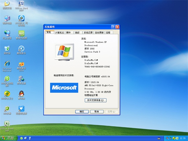 * 办公套件采用的是精简版Office2007,集成Office补丁至2015.04(可通过微软漏洞扫描和卫士漏洞扫描)