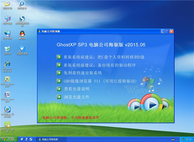 == 欢迎使用 GhostXP_SP3 电脑城海驱版 v2015.06 ==