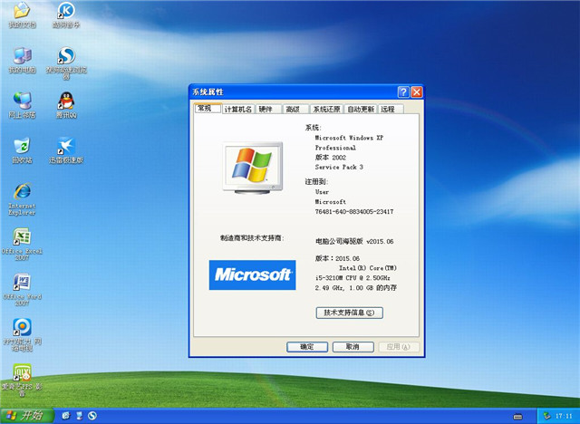 * 办公套件采用的是精简版Office2007,含Excel、Word、PowerPoint 三大常用组件。