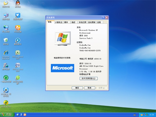 * 源安装盘采用Windows XP SP3官方免激活版,集成系统补丁至2015.12(可通过微软漏洞扫描)