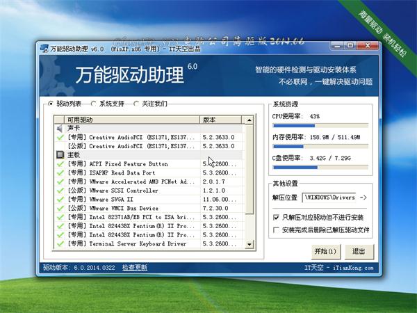 * 安装过程会运行驱动选择工具,此工具可智能判断所有的电脑硬件型号,最大限度地避免了因驱动冲突而蓝屏的现象。