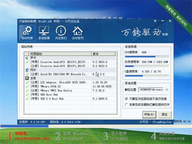 * 安装过程会运行驱动选择工具,此工具可智能判断所有的电脑硬件型号,最大限度地避免了因驱动冲突而蓝屏的现象。