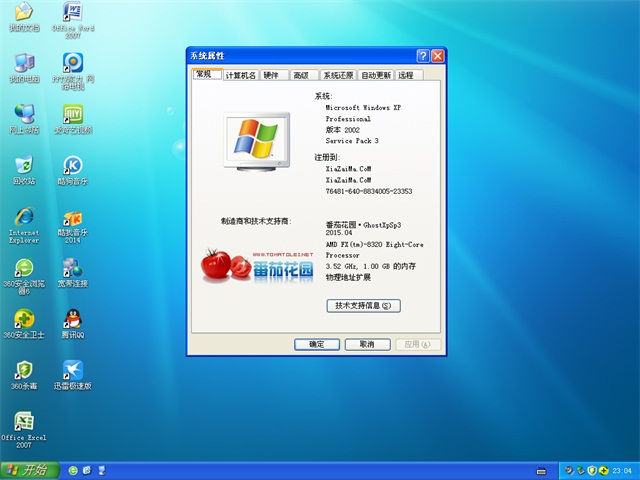 番茄花园 Ghost XP SP3 极速装机海量驱动版 v2015.04