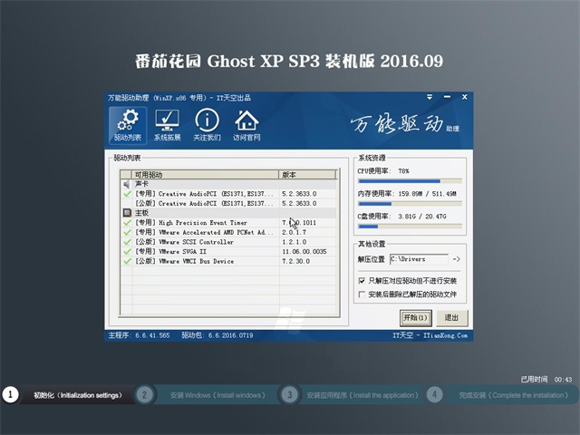 - 集成常见硬件驱动,智能识别+预解压技术,绝大多数硬件可以快速自动安装相应的驱动。