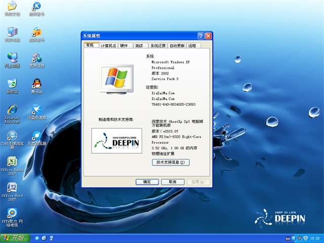 深度技术 GHOST XP SP3 电脑城万能装机版 v2015.07