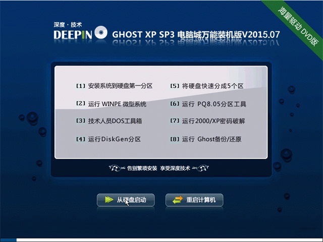 深度技术 GHOSTXPSP3 电脑城万能装机版 v2015.07