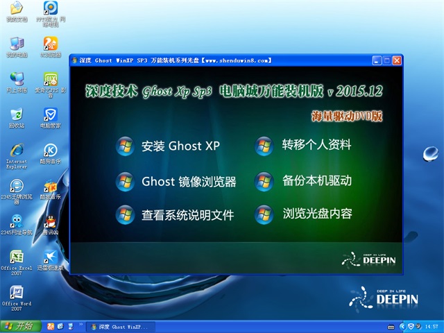 深度技术 GHOST XP SP3 电脑城万能版 V2015.12