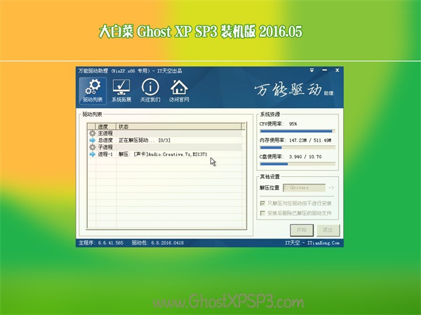 * 安装过程会运行自主开发的驱动选择工具,此工具可智能判断所有的电脑硬件型号,最大限度地避免了因驱动冲突而蓝屏的现象。