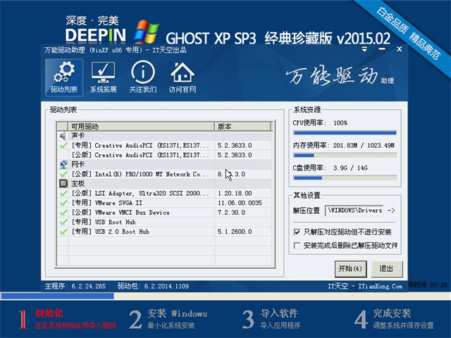 如果恢复本系统中途出现蓝屏和暂停无响应情况,请大家重新还原一次,在系统部署中调用驱动选择工具处,