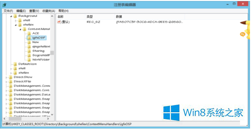 3、删除igfxDTCM注册项目表就可以了,这时候你的右键的菜单中就无“图形选项。。。”了。