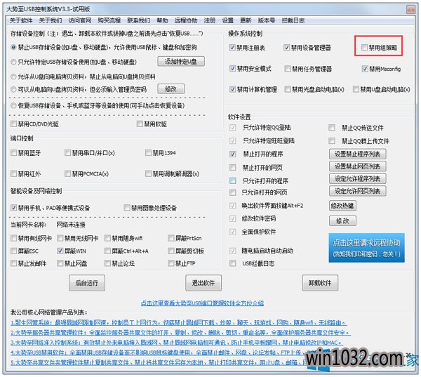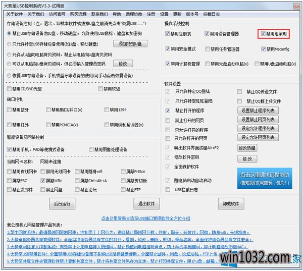 3、还有一种情况就是因为系统限制导致组策略没有法点击。对此大家可以使用“大势至USB监控”软件来进行修复;