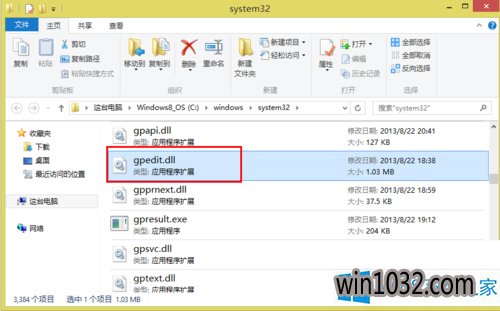 2、进入该目录,查找是不存在“gpedit.msc”文件。如图,是无找到的一种情况。对此没有法处理。如果存在该文件,只需要双击便可点击;