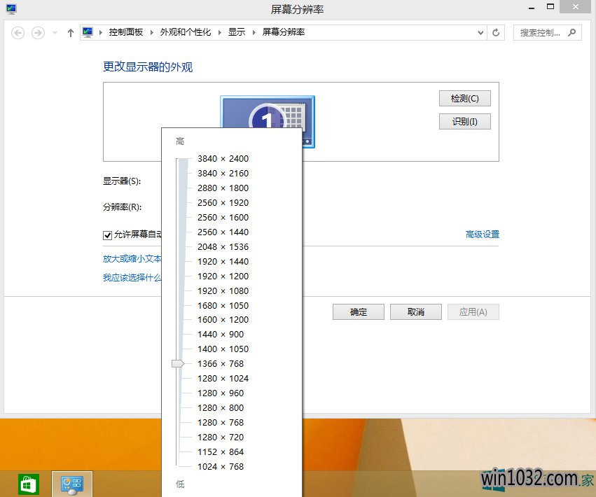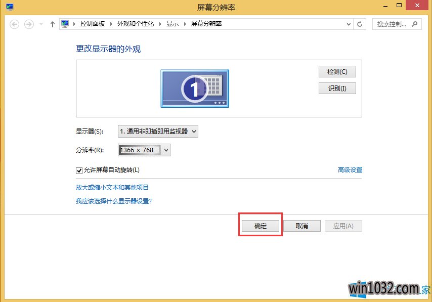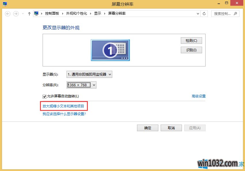 2、在这里可以调节屏幕的分辨率,适当的调节便可。