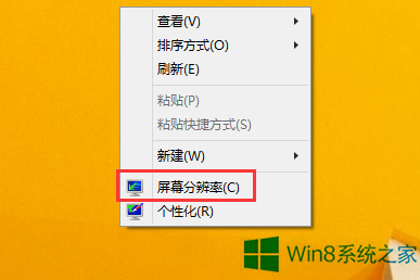 1、在桌面上空白处右击选中“屏幕分辨率”。