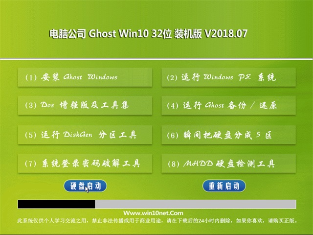 电脑公司Win10x32位装机版系统仅用于进行演示基于万能GHOST的快速部署技术,除了系统和光盘中明确标识为原创 作品的软件外,其他的全部文件归属于原版权人所有。我们不承担任何技术和版权问题,没有提供任何技术支持的义务.请勿将本系统用于商业用途!