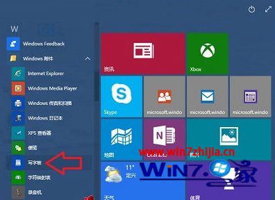 点开开始菜单,打开所有应用,找到并点开windows附件项目,您就可以找到并打开打开写字板程序了。