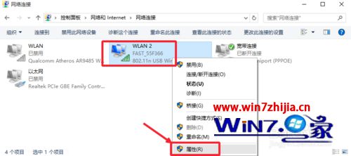 3、在使用的网卡上面点击鼠标右键,然后菜单里面选中属性打开;