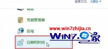 2、在控制面板中的查看方式修改为“大图片”,然后打开日期和时间;