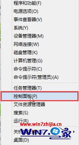1、在win10系统中按下“win+x”组合键呼出系统快捷菜单,打开“控制面板”;