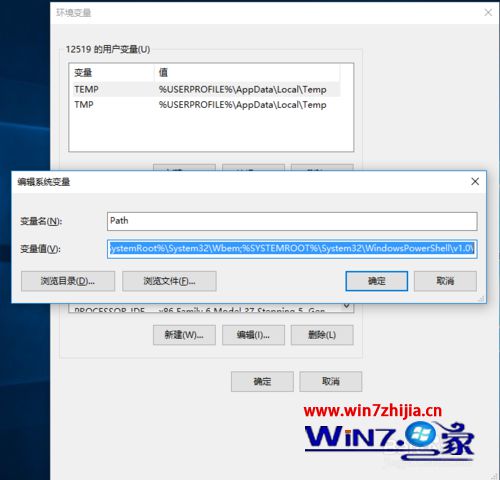 5、path”变量——编辑文本在“变量值”最后写入 %JAVA_HoME%\bin;%JAVA_HoME%\jre\bin; 然后点击确定;