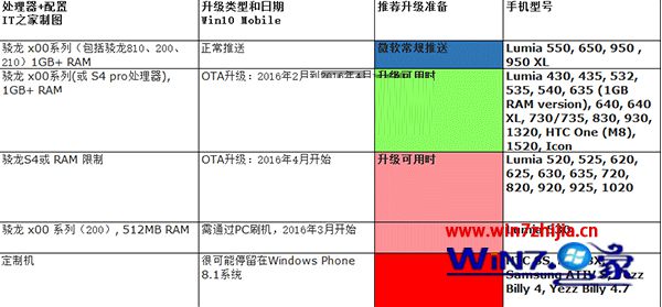 无法升级win10的机型:HTC 8x、HTC 8s、三星ATiV s、Yezz Billy 4、Yezz Billy 4.7