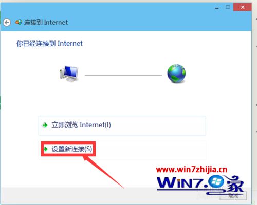 4、因为小编已经联网了,所以打开“设置新连接”,在新连接中选中“宽带连接”