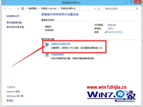 2、在“打开网络和共享中心”中,打开“设置新的连接或网络”;