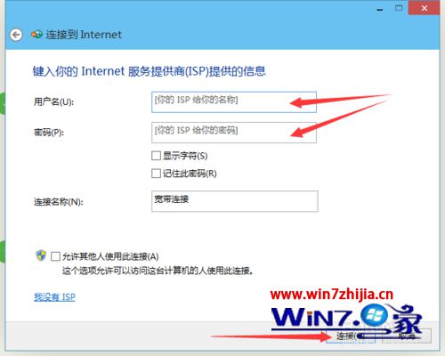 5、写入宽带连接正确的网友名和密码,然后打开右下角的“连接”;