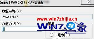 3、右键“EnableLUA” 选“修改”。把值改成0,确定。就好了。