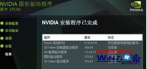 10、显示“nVidiA安装程序完成”点【关闭】便可完成安装。