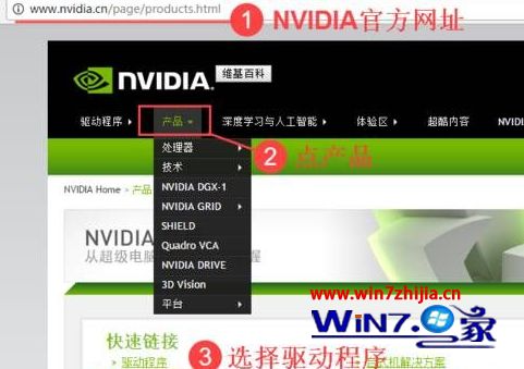 1、进入nVidiA官方,可再百度中搜索nVidiA,点【产品】-【驱动程序】;