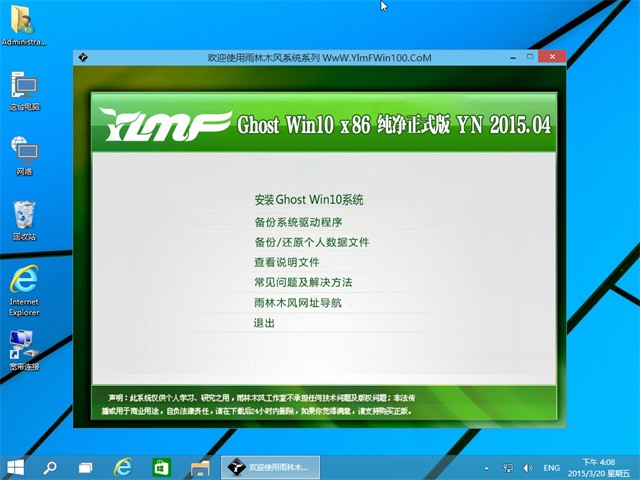 雨林木风 Ghost Win10 32位 纯净正式版 2015.04