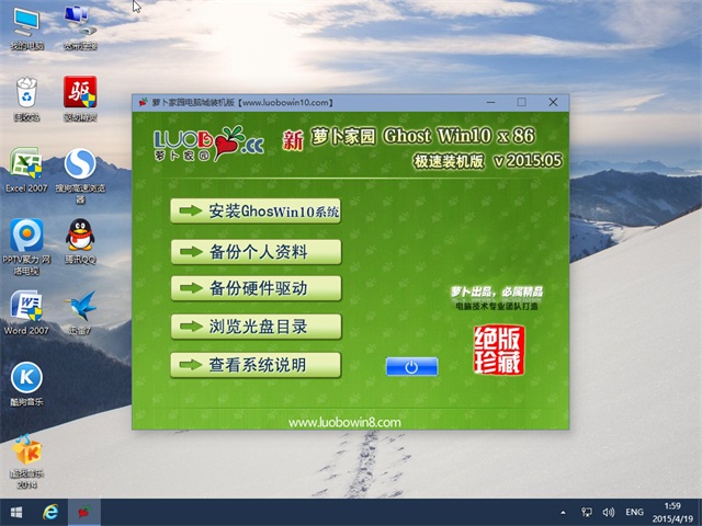 新萝卜家园 Ghost Win10 X86 2015年 劳动节版