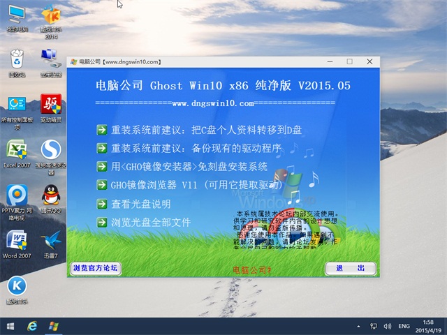 电脑公司 Ghost Win10 32位 劳动节装机版 2015.05