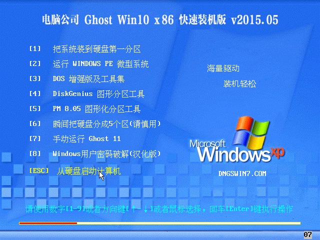1.光盘启动后可以用数字键1-7来选择菜单再回车执行,简单方便、快速有效。