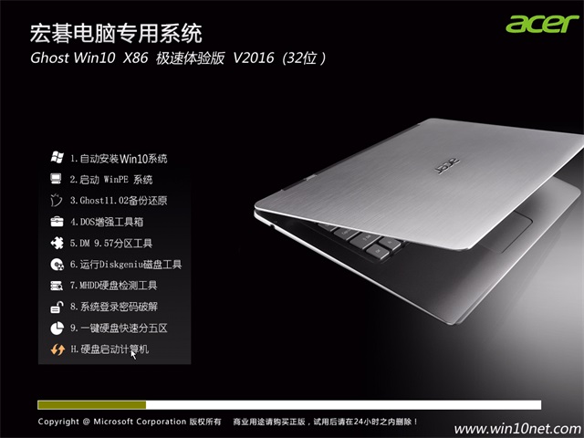 (acer宏碁)Ghost Win10 32位 免激活专业版 2016