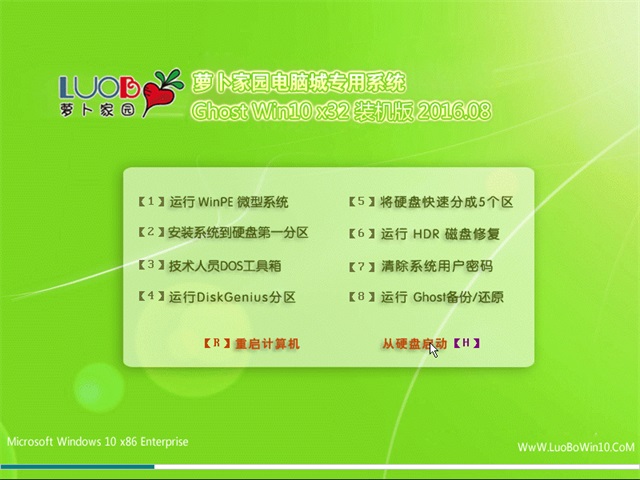 新萝卜家园Ghost Win10 32位 装机版 2016.08