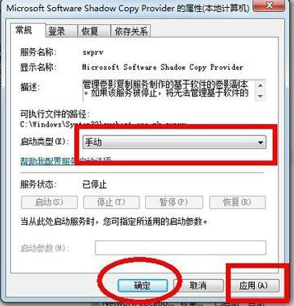 应对措施:在桌面上点“开始——搜索”选项,在窗口中输入“services”指令后按回车键,接着鼠标双击结果中的“services.exe”键值开启服务管理器,在其中查找并点击“Microsoft Software Shadow Copy Provider”服务项,把“启动类型”更改成“开启”,再选择“应用——确定”就行了。