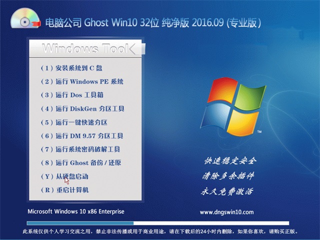 电脑公司 Ghost Win10 32位 纯净版 V2016.09(永久激活)