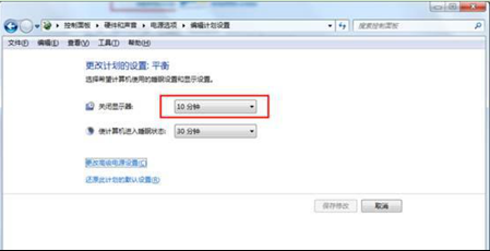 3、在弹出的编辑计划设置的菜单栏里,您就可以在显示器后面的下拉按钮依据自己的需求来设置关闭的时间,最后点击“保存修改”就可以了。