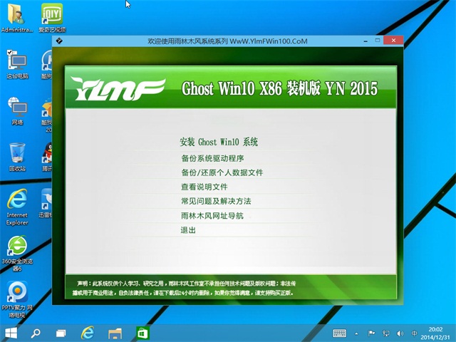 雨林木风 Ghost Win10 装机版 YN2015.01
