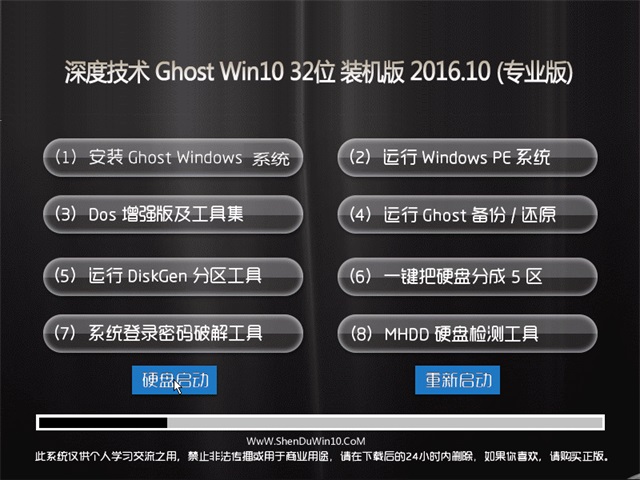 本系统仅用于进行演示基于万能GHOST的快速部署技术,供装机维护技术人员参考,我们不承担任何技术及版权问题,且不对任何资源负法律责任。所有资源请在下载后24小时内删除。如果您觉得满意,请购买正版!!!