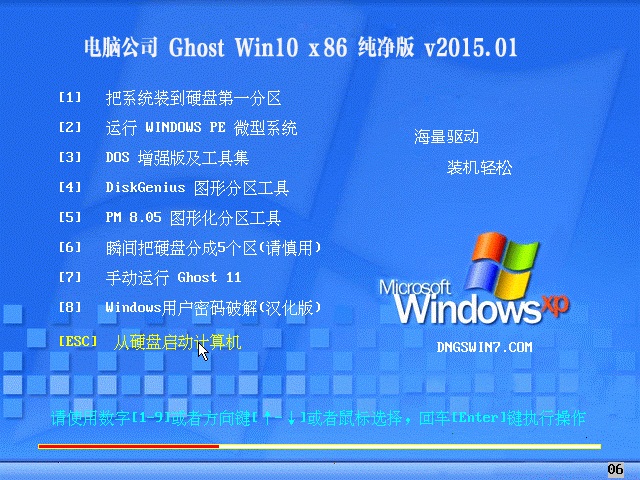 1.光盘启动后可以用数字键1-7来选择菜单再回车执行,简单方便、快速有效。