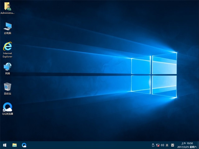 7、安装完成后使用administrator账户直接登录系统,无需手动设置账号;