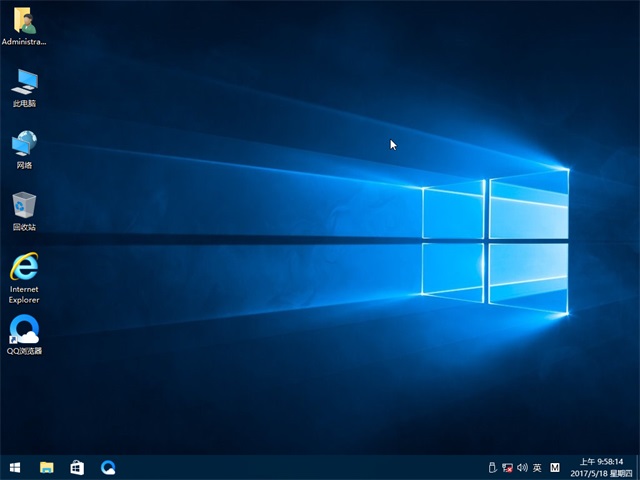 7、安装完成后使用administrator账户直接登录系统,无需手动设置账号;