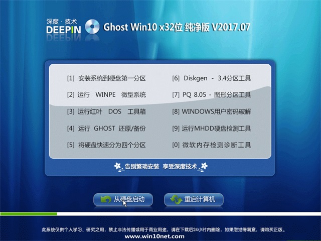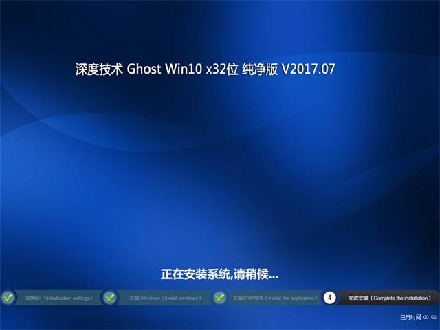 深度技术Ghost Win10 X32 王牌纯净版2017.07(免激活)