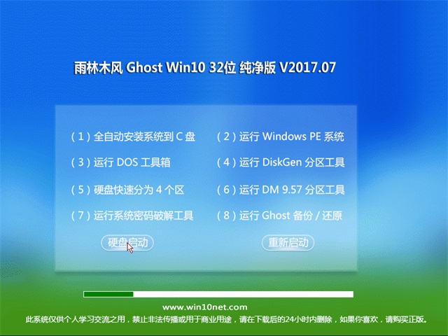 雨林木风Ghost Win10 32位 安全纯净版V2017年07月(激活版)