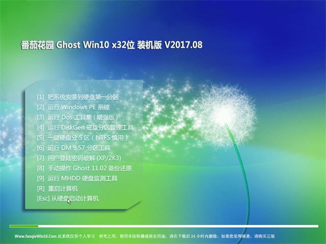 番茄花园Win10x32位装机版系统仅用于进行演示基于万能GHOST的快速部署技