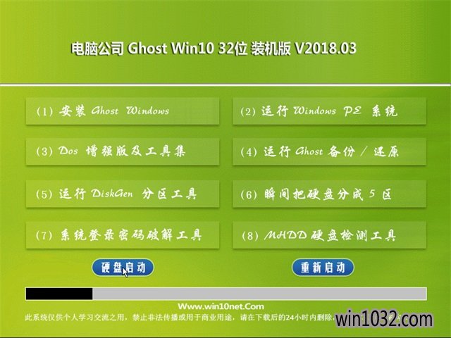 电脑公司Win10x32位装机版系统仅用于进行演示基于万能GHOST的快速部署技术,除了系统和光盘中明确标识为原创 作品的软件外,其他的全部文件归属于原版权人所有。我们不承担任何技术和版权问题,没有提供任何技术支持的义务.请勿将本系统用于商业用途!